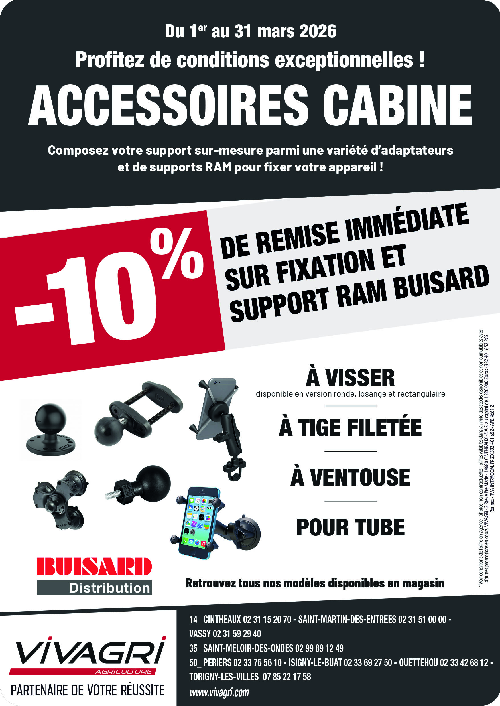 COMPOSEZ VOTRE SUPPORT SUR-MESURE POUR FIXER VOTRE APPAREIL ! Rendez-vous dans votre agence Vivagri la plus proche et bénéficiez de 10% de remise sur fixation et support RAM.